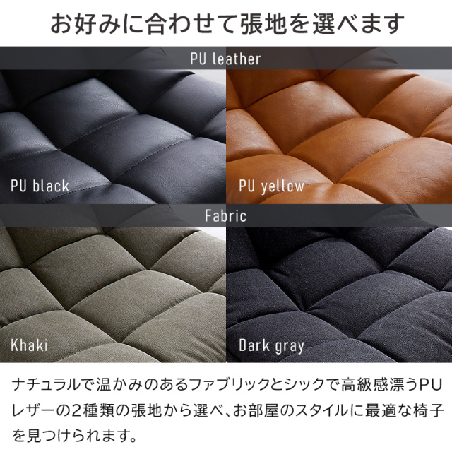 | 商品仕様 | 【DGY・KHAKI】張生地:コットン80%、ポリエステル20% 【PU BK・PU YE】張生地:PU 脚部:スチール(艶なし) 脚キャップ:樹脂製 |