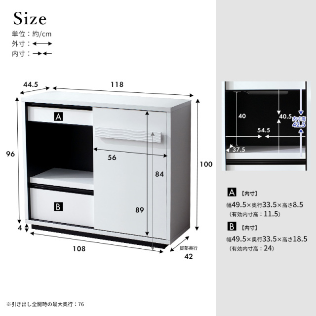 | 商品サイズ | (約)幅118cm×奥行き44.5cm×高さ100cm |