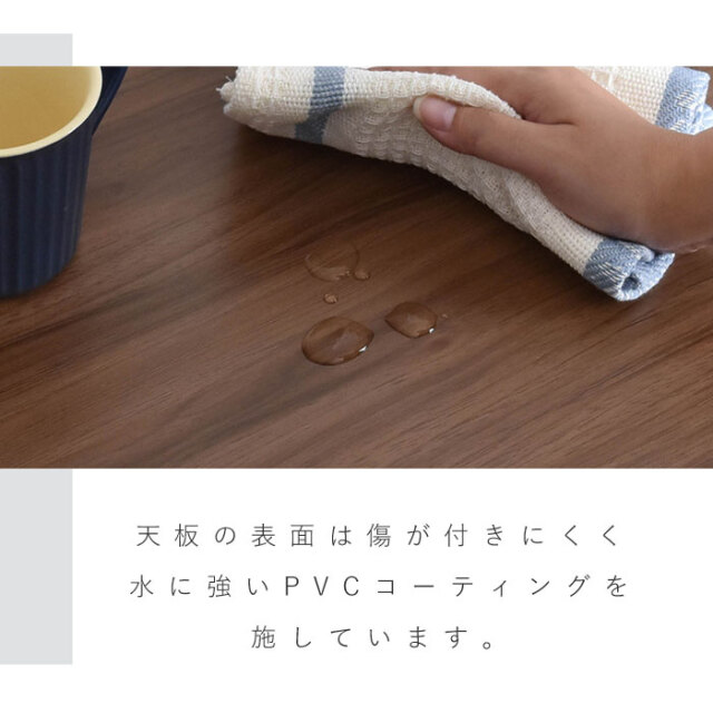 | 商品仕様 | 本体:プリント紙化粧繊維板 天板:合成樹脂化粧繊維板 引出し鏡面:ウレタン樹脂塗装 |