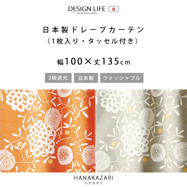 | 商品名 | ドレープカーテン ハナカザリ 幅100×丈135 |