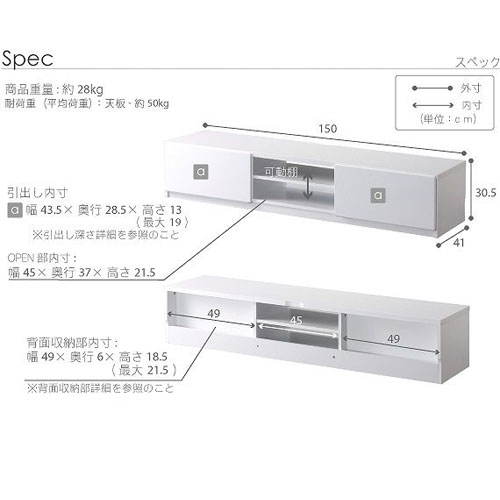 | 商品サイズ | (約)幅150cmx奥行41cmx高さ30.5cm |