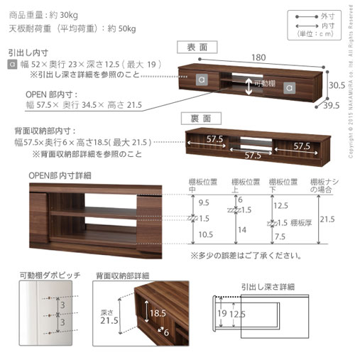 | 商品サイズ | (約)幅180cm×奥行き39.5cm×高さ30.5cm |
