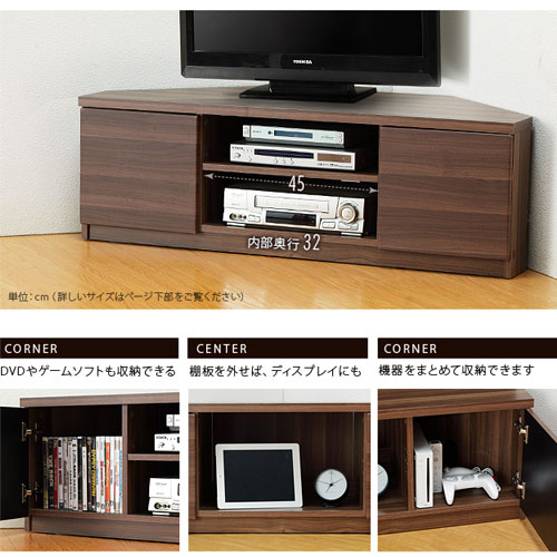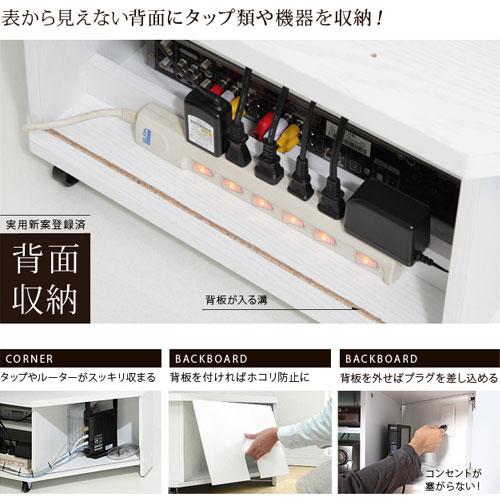 | 背面収納テレビ台コーナータイプ ステラ 木目も美しい背面収納テレビ台 落ち着いた雰囲気の美しい木目模様を実現 お部屋に合わせて選べる3色 見苦しいコードを収納できるスペース付き 落ち着いたデザインのインテリアを好むお客様におすすめください! 実用新案登録済の背面収納スペース 配線収納で、こんなにスッキリ! テレビ周りの悩みを解決します 表から見えない背面にタップ類や機器を収納! キャスター付きで移動可能 前後に移動可能ですので、お掃除や模様替えの際もらくらく移動できます! スッキリ収納できる扉付き デッドスペースも有効活用できる 豊富なバリエーション 3色の色に加え、様々なサイズ・形をご用意しております! 洗練の3色 ウォールナット柄、ホワイト木目調、ブラック木目調から選べます。 バランスを考えた大きさで お使いになるテレビに合わせてサイズをお選びください。 | |