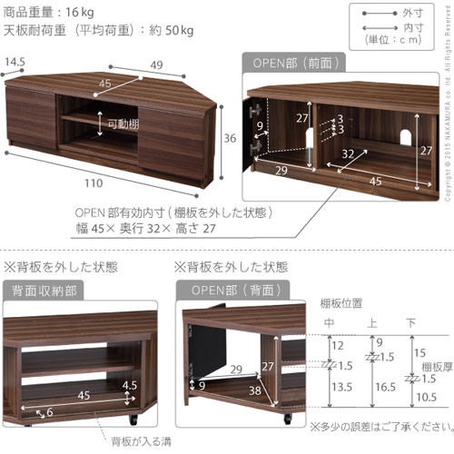 | 商品名 | 背面収納テレビ台コーナータイプ ステラ |