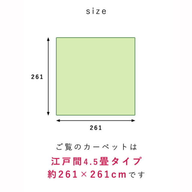 | 商品名 | 日本製 PPカーペット 洗える 江戸間4.5畳 261×261 |