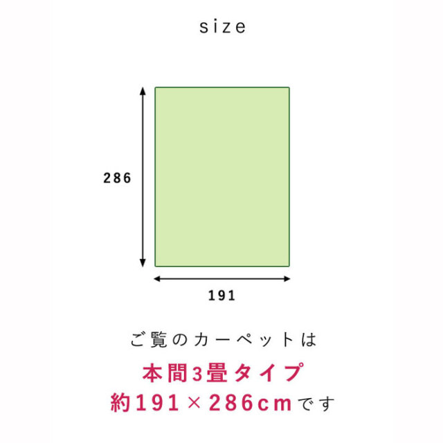 | 商品名 | 日本製 PPカーペット 洗える 本間3畳 191×286 |