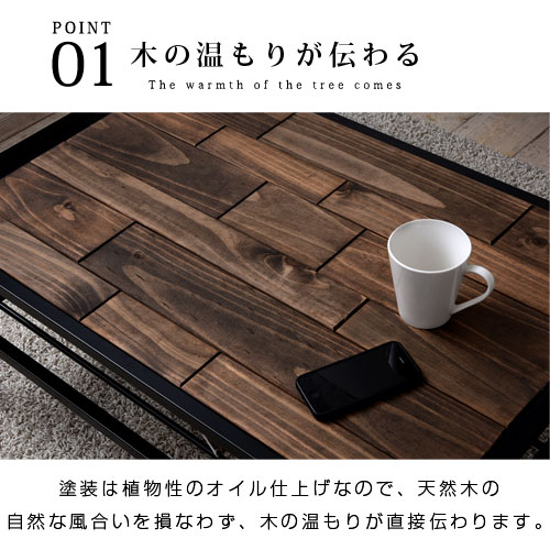 | 自然な風合いの木部と無機質なスチール GRANT グラントシリーズ ダイニングテーブル 単品 植物性のオイル塗装で仕上げた、色々なサイズの天然木(パイン材)の板を個性的にブロック状に組み合わせて作った商品です。 職ブウ製のオイルを使用しているので、安心安全でお子様がいる家庭にもご好評いただいております。 オイル仕上げの自然な風合いの木部と、無機質なスチールが絶妙にマッチした大人気シリーズです。 木の温もりが伝わる 塗装は植物性のオイル仕上げなので、天然木の自然な風合いを損なわず、気の温もりが直接伝わります。 ゆったりサイズの天板 天板は、使いやすさを考えたゆとりのサイズ。 1人でも、お客様との楽しい時間にも使いやすい大きさです。 アイアンの棚板でスッキリ 天板の下には、アイアンの棚板があり、新聞や雑誌、テレビのリモコンなどをおけるスペースを確保してあります。 マガジンラック付き 天板のアイアンフレームは2重構造となっております。隙間は約1.5cmですので、雑誌や新聞の収納にとても便利です。 とにかくオシャレなダメージ加工と、アイアンが絶妙なバランスでどの角度から見てもスタイリッシュでオシャレです。 | |