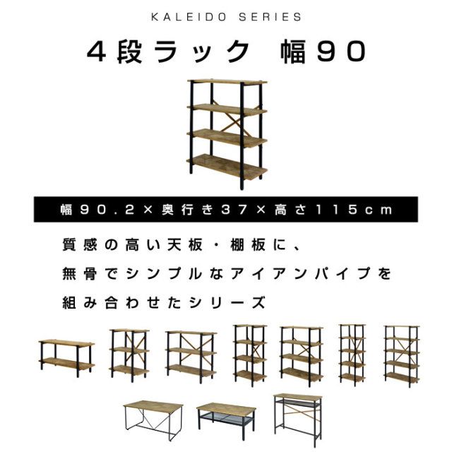 | 商品名 | 古材風のパイン材と無骨でシンプルなアイアン 4段ラック 幅90 カレイド |