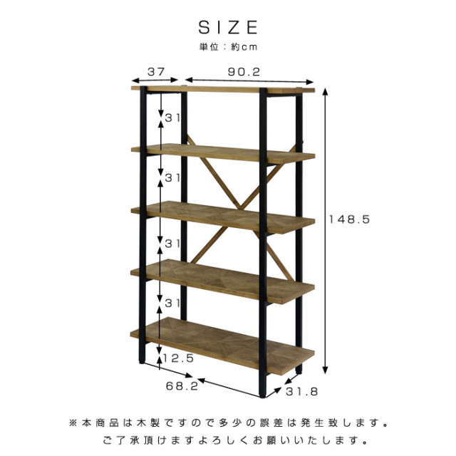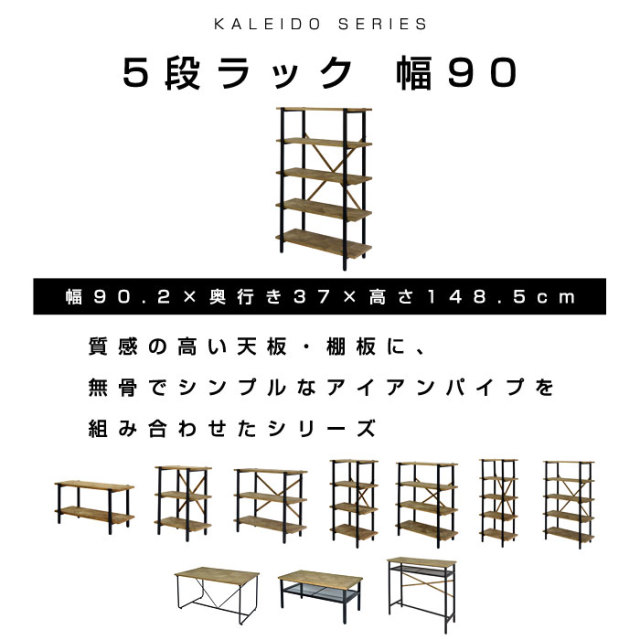 | 商品名 | 古材風のパイン材と無骨でシンプルなアイアン 5段ラック 幅90 カレイド |