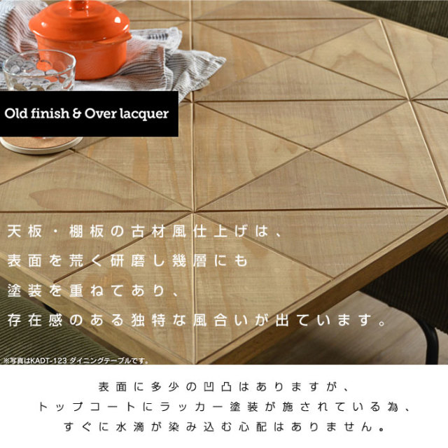 | KALEIDO 5段ラック 幅90.2cm×奥行き37cm×高さ148.5cm カレイドシリーズは三角形にカットした古材風のパイン材をジオメトリックに並べた、質感の高い天板・棚板に、無骨でシンプルなアイアンパイプを組み合わせたシリーズです。 | |