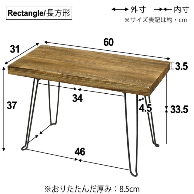 | 商品サイズ | 長方形:(約)幅60cm×奥行き31cm×高さ37cm 円形:(約)直径50cm×高さ3cm |