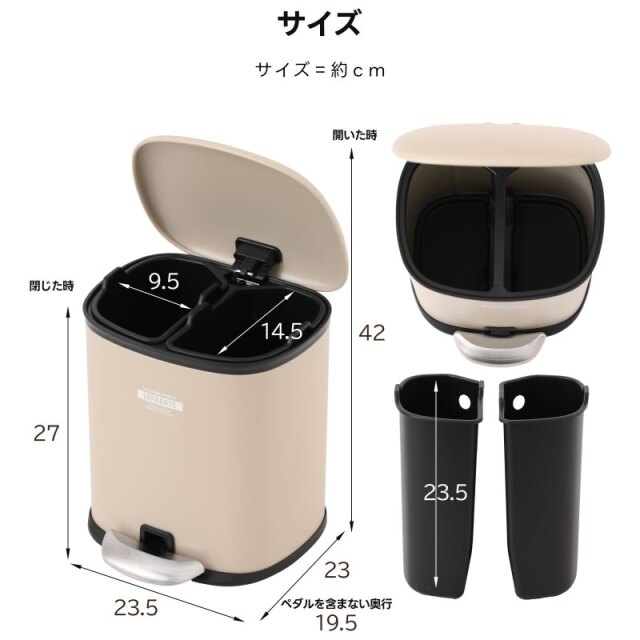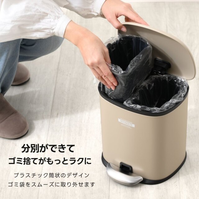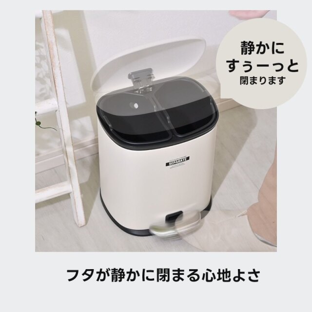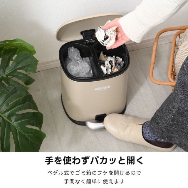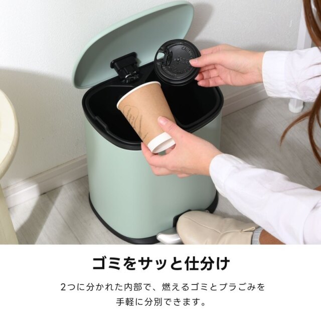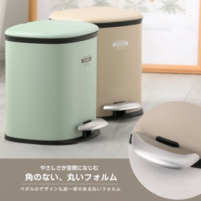 | ちょっとレトロでモダンな優しいフォルムのゴミ箱 本体はアイアンでできていて コロンとした愛らしいデザインだけれども どこかインダストリアルな雰囲気も漂う おしゃれなデザイン ペダルを踏み込めばフタがパカッと開き そこには2つのプラスチックの仕分けがあります 燃えるゴミとプラごみなどをコンパクトながら 分別ができるも便利な点ですよね そしてペダルから足を離すとスーッとフタが閉まり 高級感がある演出で静かに閉まります。 | |