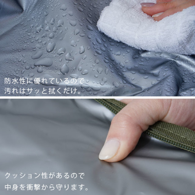 | 注意事項 | ・簡易保冷バッグとしてご使用の際には保冷剤等を併用してください。 ・内側は完全防水ではありません。氷を直接入れないでください。 ・素材の性質上、洗濯・クリーニングは手洗いであってもお避けください。※雨などで濡れた場合でも、乾燥機のご使用はおやめください。 |