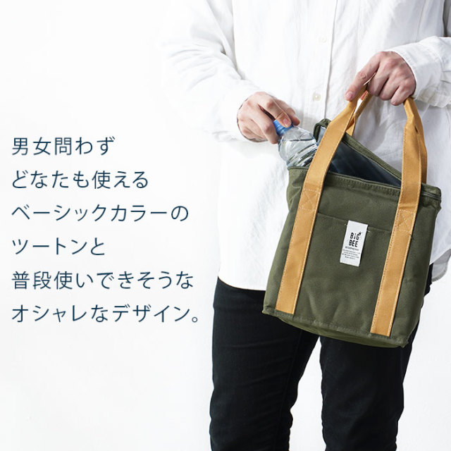 | 落ち着いたカラーをベースにツートンデザインに仕上げた、遊び心と実用性を兼ねたおしゃれなクーラーバッグです。 まるで普段使いできそうなおしゃれなバッグ。カジュアルさを兼ね備えています。 ボックス型のクーラーバッグは四角いので、コンパクトながら大容量になっています。大きく開き口が開けられ、2つのファスナーで便利に開閉できます。 バッグ内は全面保冷シートを貼っていますので、使用しているので長時間冷気を守ります。また、クッション性のある中材を使用していますので、中身を衝撃から守ります。保冷剤ポケットもついています。 | |