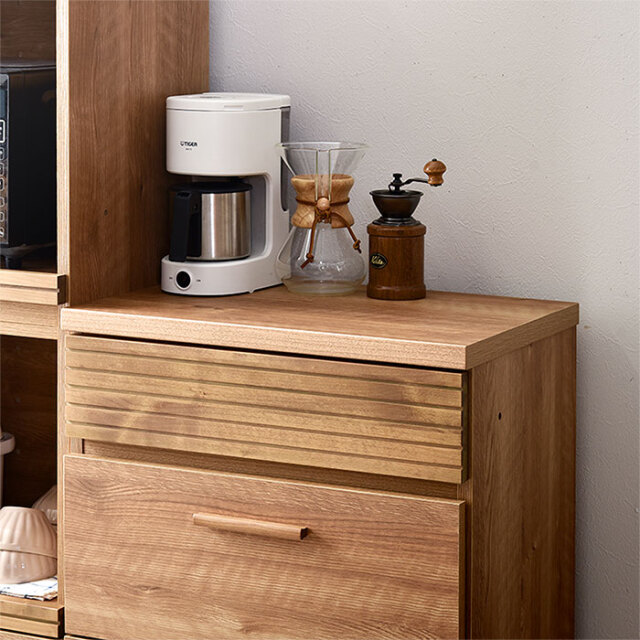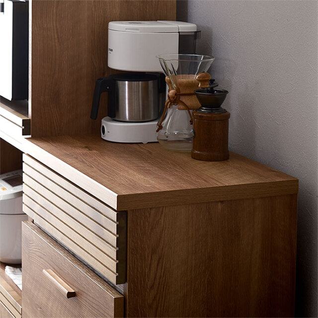 | 国産ユニット食器棚シリーズには別売りの専用天板をご用意しております。 単体でのご使用時に必要な60cmタイプ、2台の収納を横に連結できる120cmタイプをご用意。 こちらの天板を使用して頂くことで組み合わせ方はさらに広がり、お好みの形にしてお楽しみ頂けます。 単体でオシャレに縦横自在に組み合わせてあなたの理想の空間を演出。 | |