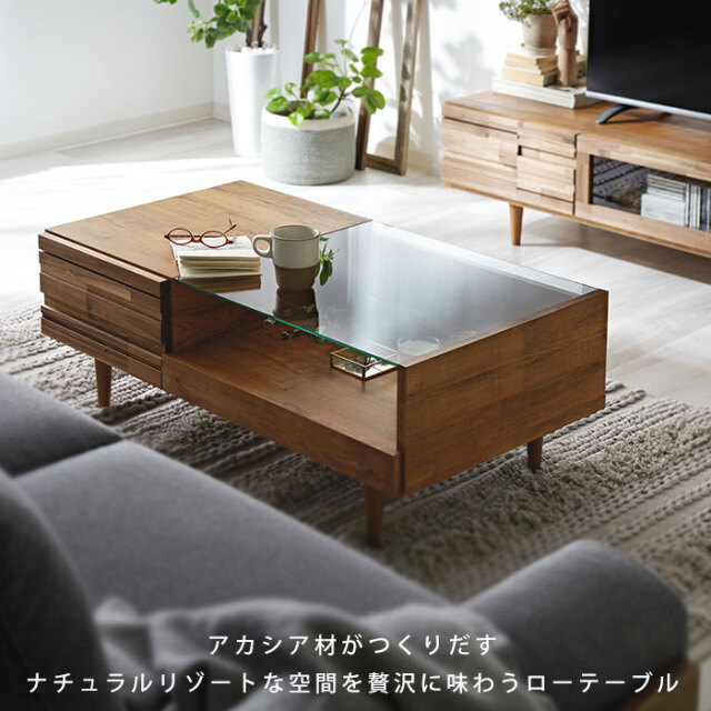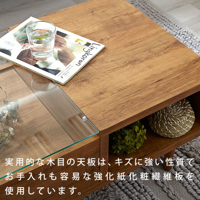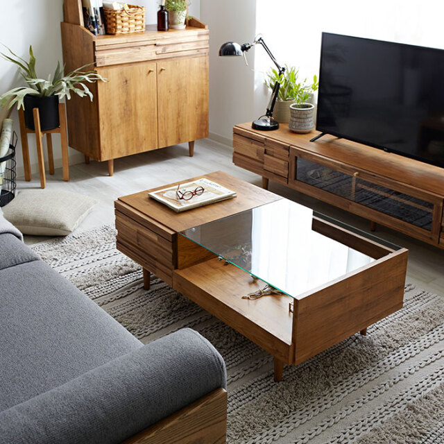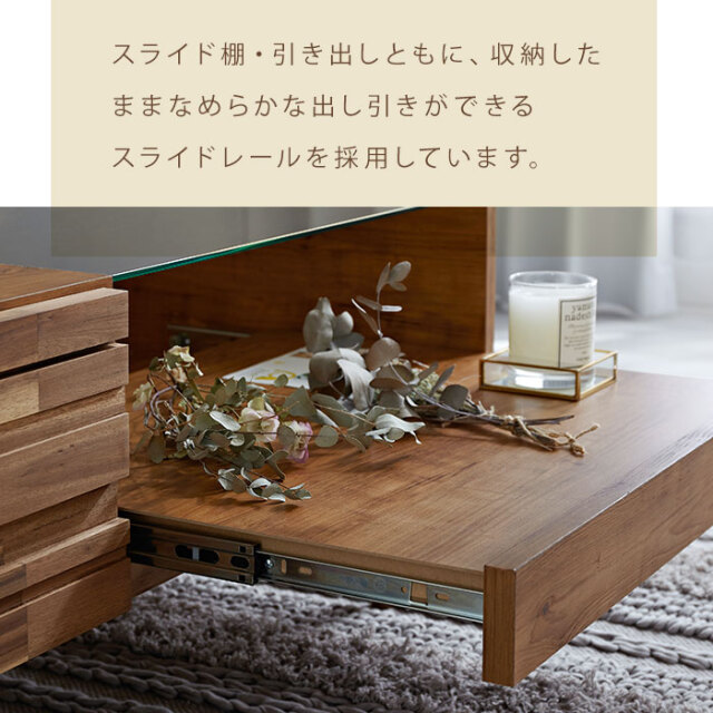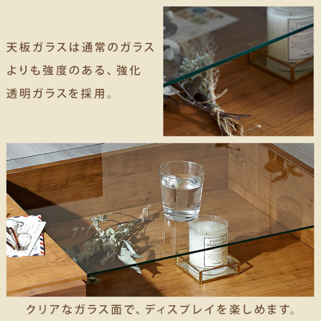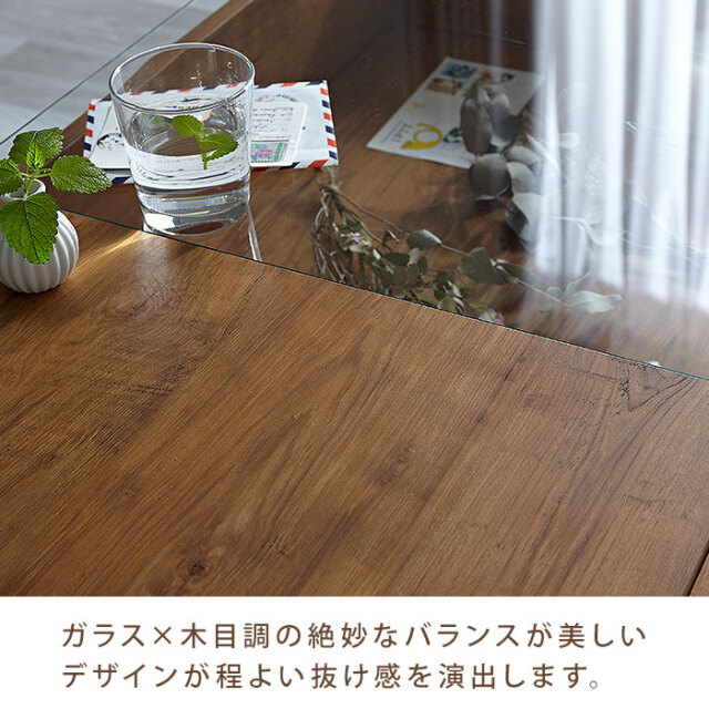 | 商品仕様 | 天板:強化紙化粧繊維板/5mm強化ガラス 前板:アカシア集成材(オイル塗装) 脚部:ラバーウッド(ウレタン塗装) その他:プリント化粧繊維板 |