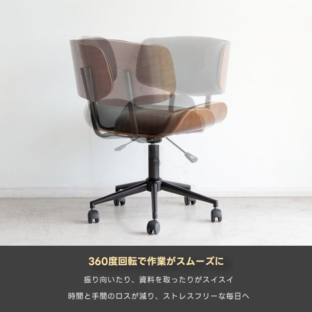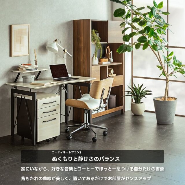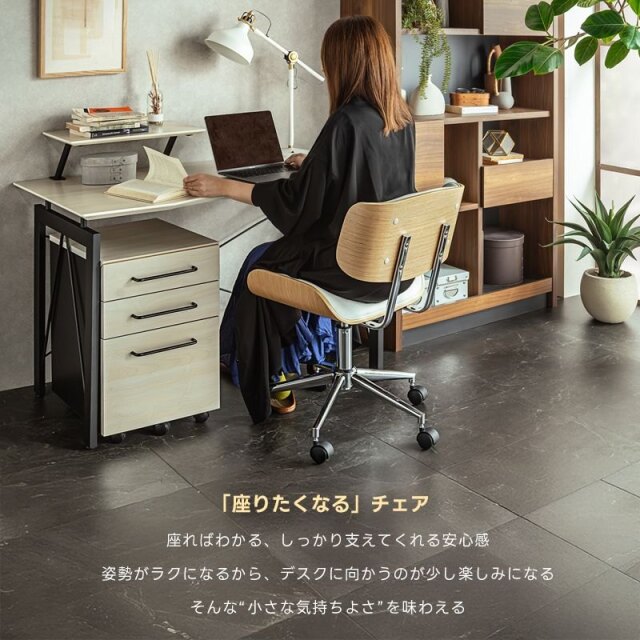 | 無駄をそぎ落としたシンプルなフォルムと、 木目とファブリックの組み合わせが、空間に上質な抜け感を。 スタイリッシュなのにどこかやさしいデザインで、 背中を包むように支え、長時間の作業も快適に。 フローリングにやさしいナイロンキャスター付きで、 静かにスムーズに移動も可能。 機能も見た目も、スマートに整うチェアです。 | |
