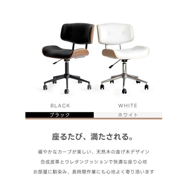 | 商品仕様 | 前板:曲積層合板(ラッカー塗装) 脚部: 【ブラック】スチール(紛体塗装) 【ホワイト】スチール(クロームメッキ) 張地:合成皮革(PU) 芯材:積層合板 中身:ウレタンフォーム その他:ナイロンキャスター |