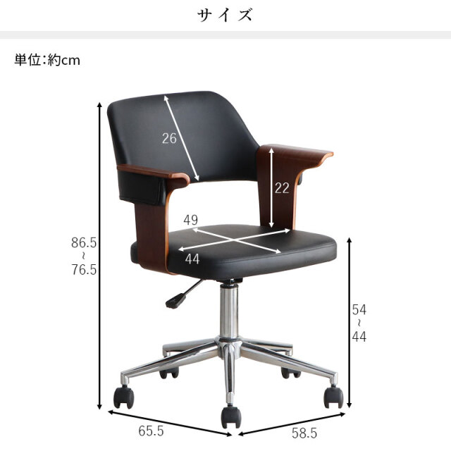 | 商品サイズ | (約)幅58.5cm×奥行き65.5cm×高さ76.5~86.5cm |