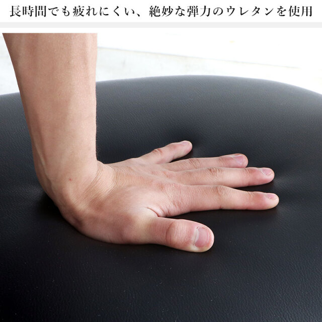 | 商品仕様 | 前板:突板化粧曲合板(ラッカー塗装) 脚部:スチール(クロームメッキ) 張地:合成皮革(PU) 芯材:積層合板 中身:ウレタンフォーム その他:ナイロンキャスター |