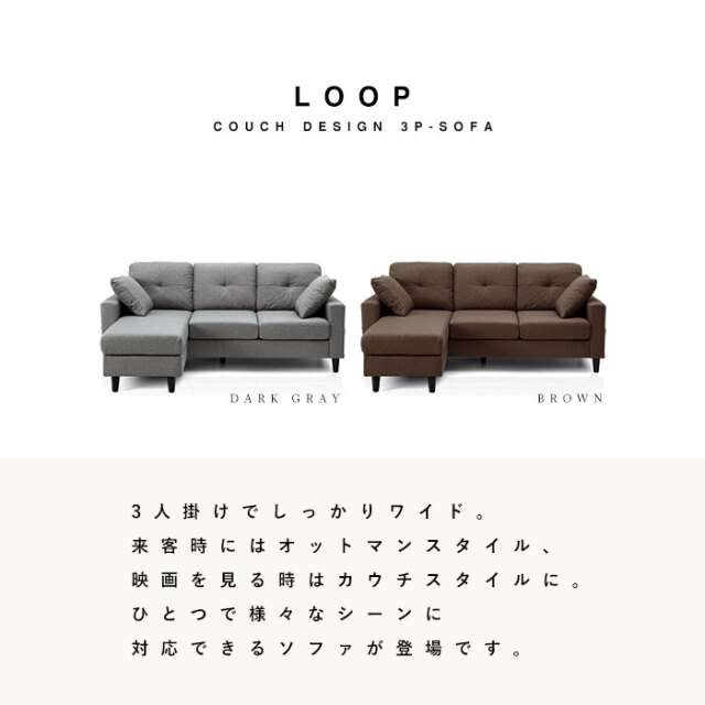 | 商品名 | スタイルチェンジ 3人掛け 3P カウチソファー オットマン ループ |