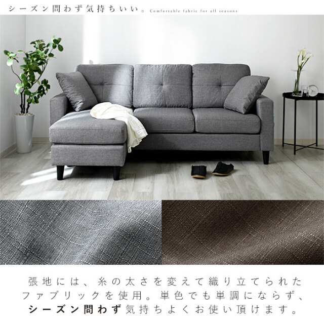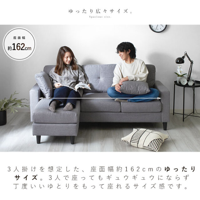 | ひとつで様々なシーンに対応できる、組み換えデザインのソファが登場です。 3人掛けを想定した、座面幅約162cmのゆったりサイズ。3人で座ってもギュウギュウにならず、ちょうどいいゆとりをもって座れるサイズ感です。 一番の特徴は、座面を入れ替えることで、足を伸ばして座れるカウチスタイルや、来客時にも使えるオットマンスタイルと簡単にスタイルチェンジする事ができます。 本体張地には、糸の太さを変えて織り立てられたファブリックを使用。単色でも単調にならず、シーズン問わず気持ちよくお使いいただけます。 | |