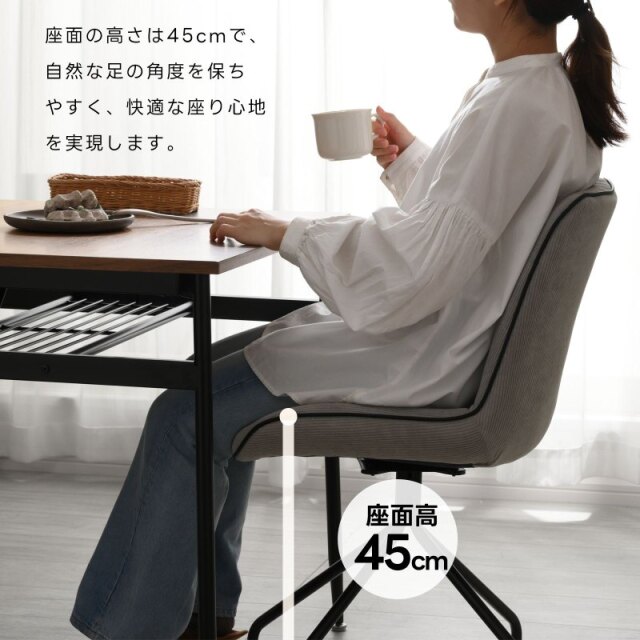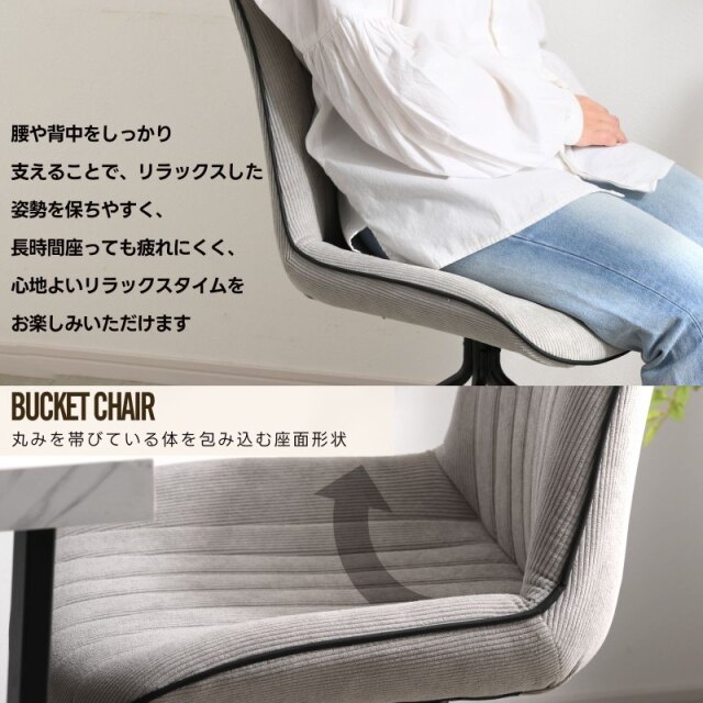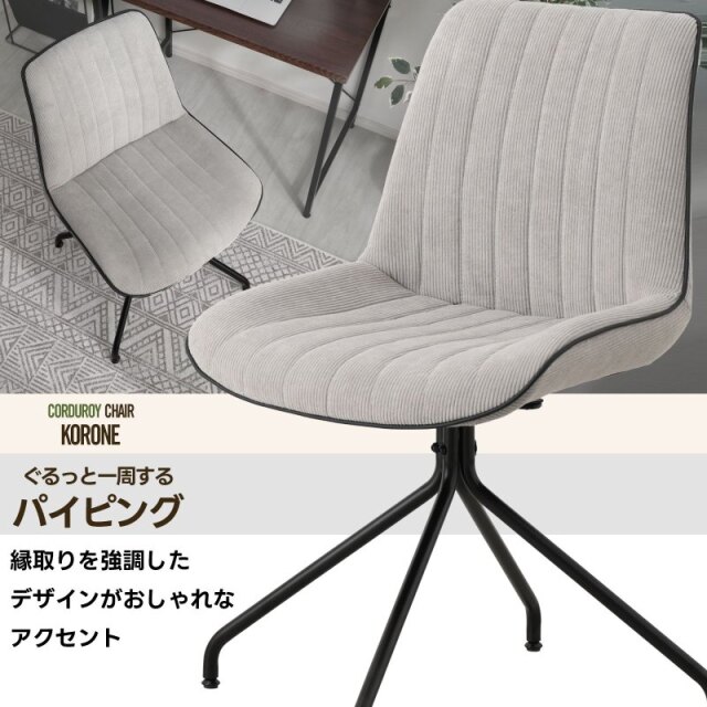| シンプルなデザインにコーデュロイの縦筋が アクセントとなった、質感の高い おしゃれなチェアです スタイリッシュでありながら高級感も漂います お部屋のアクセントとしても映える一品です 椅子は軽い力で回転するので手をすこし添えるだけで デスクから自分の方向に簡単に動かせます 表面に縦筋が見えるかわいいデザイン 立体感があり、滑らかな手触りとわずかな凸凹が特徴です | |