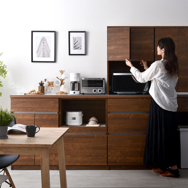| 6タイプの収納を自由に組み合わせてつくれるカスタマイズキッチン収納シリーズ。 それぞれ違った特徴を持つ収納を組み立て自分だけのオリジナル家具を作れます。 使う時だけ引き出せるスライド棚や隠す木製扉収納、各種引き出しなど、それぞれタイプの違った特徴を持っております。 使いたい用途やシーンに合わせて快適にフィットします。 | |