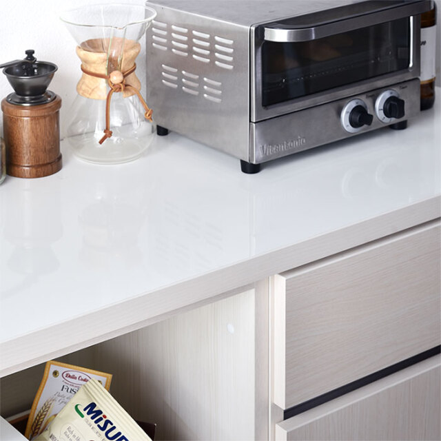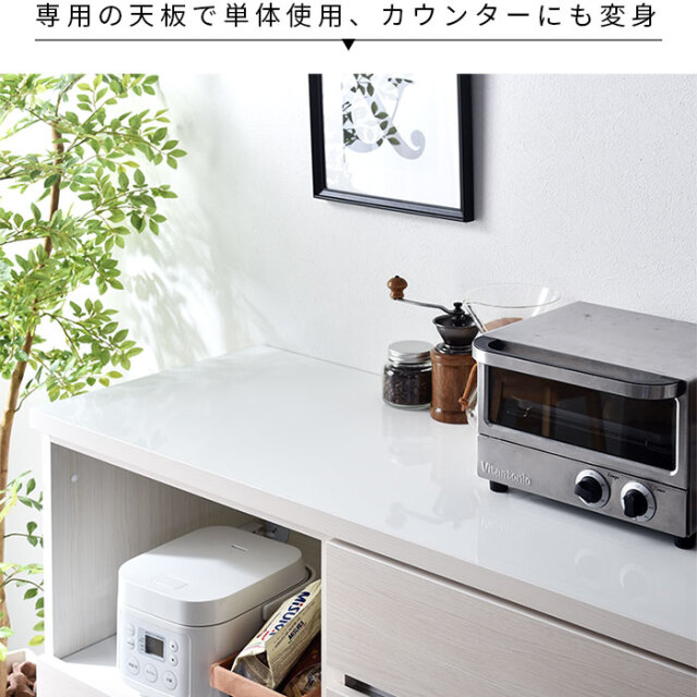 | 国産ユニットキッチン収納カフェ 幅60cmシリーズには別売りの専用天板をご用意しております。 単体でのご使用時に必要な60cmタイプ、2台の収納を横に連結できる120cmタイプ、3台連結できる180cmタイプをご用意。 こちらの天板を使用して頂くことで組み合わせ方はさらに広がり、お好みの形にしてお楽しみ頂けます。 | |
