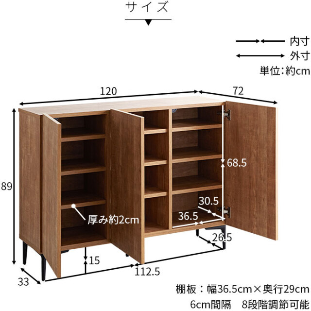 | 商品サイズ | (約)幅119.3cm×奥行き34.7cm×高さ89cm |