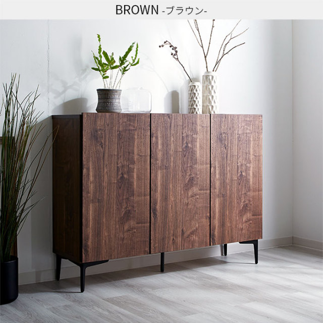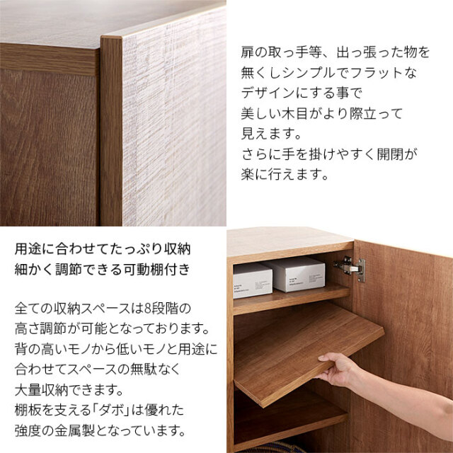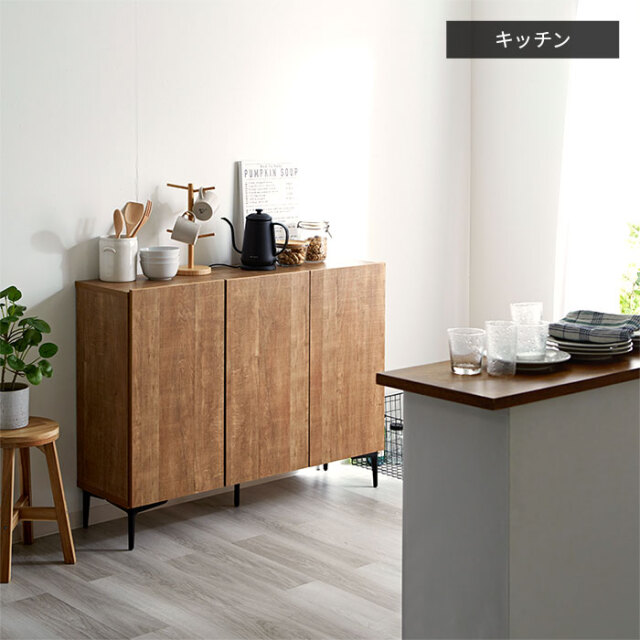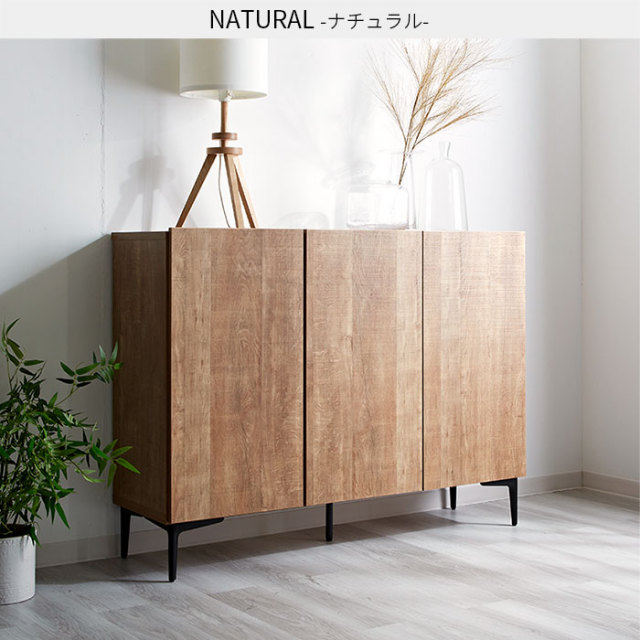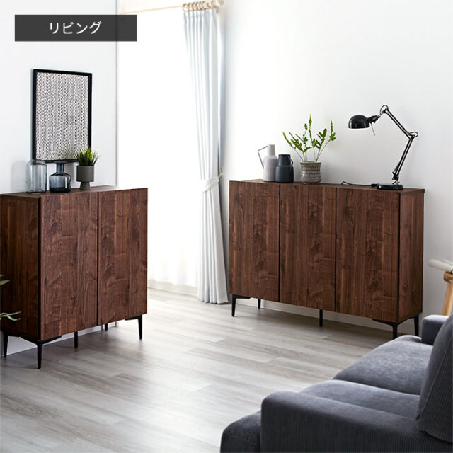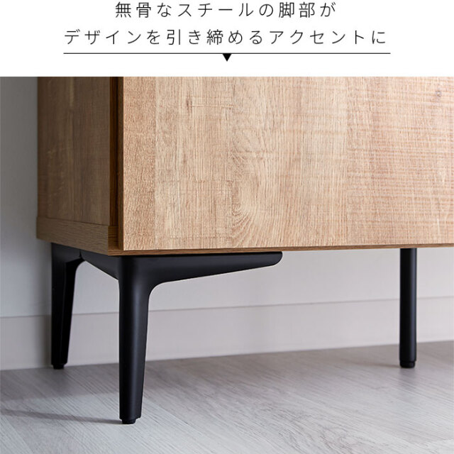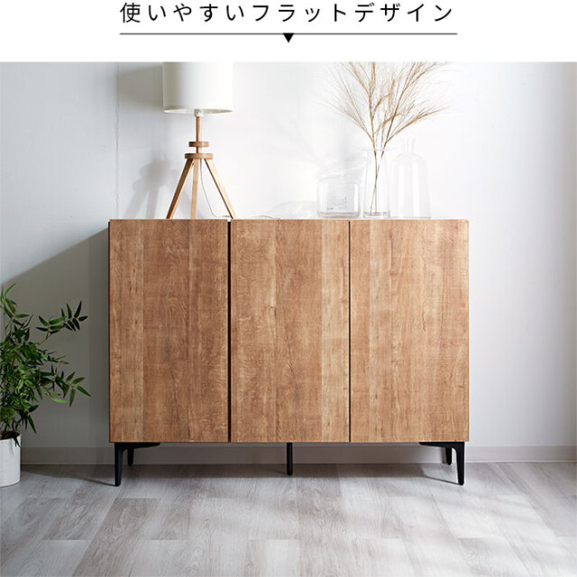 | 生活感の出やすい雑多な小物も扉で隠してすっきり。 中身の見えない大容量の収納スペースと木目調が魅力の美しいデザイン性で生活感を抑えた上質なお部屋づくりをして頂けます。 ブラックスチールの脚部で程良く個性を持たせたシンプルなフォルムの中に上質さを感じさせるデザインになっています。 見栄えはスッキリ美しく洗練された空間作りができます。 | |