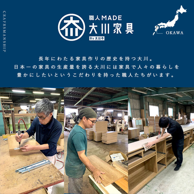 | 組み合わせ自由自在自分好みのキッチン収納 個性を形にする。 6タイプの収納を自由自在に組合わせてつくることができる。カスタマイズキッチン収納シリーズ毎日を想像しながらあなただけのお気に入りキッチンを作ってください。 憧れのヴィンテージ風キッチン 隠す収納は引き出しや扉付きなので、見た目がごちゃごちゃせずに、スッキリするのが良いところ。急な来客時にも出しっぱなしにしていた物などをササッとしまうことができて便利です。 組合わせのパターンは全12パターンあなたの暮らしにあった収納づくりを。 組み合わせによって見た目の印象も変わり、お部屋のコーディネートも自由自在に。見せる収納と隠す収納の豊富なバリエーションで自分好みで暮らしにあったキッチンスペースを。 長年にわたる家具作りの歴史を持つ大川。 日本一の家具の生産量を誇る大川には家具で人々の暮らしを豊かにしたいというこだわりを持った職人たちがいます。 国産だからできる精巧さ 熟練の家具職人が一つ一つ丁寧に真心こめて作り上げた完成度の高いキッチン収納。安価な輸入品とは違い、手作りのプライドと情熱が集結しています。 | |
