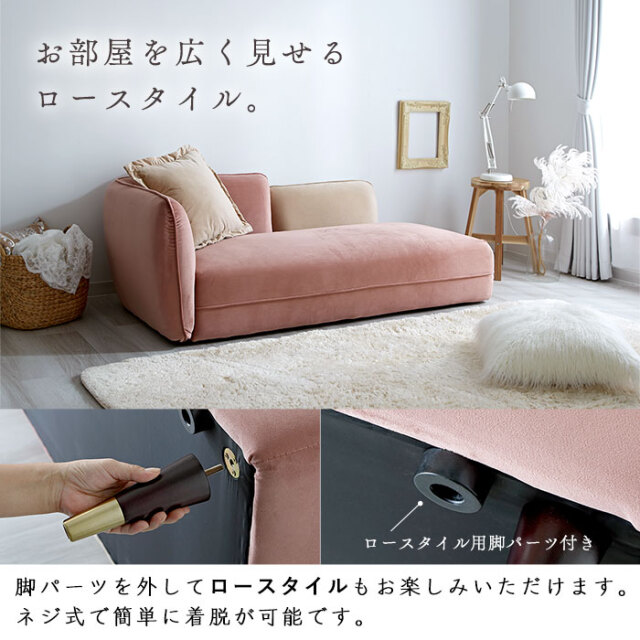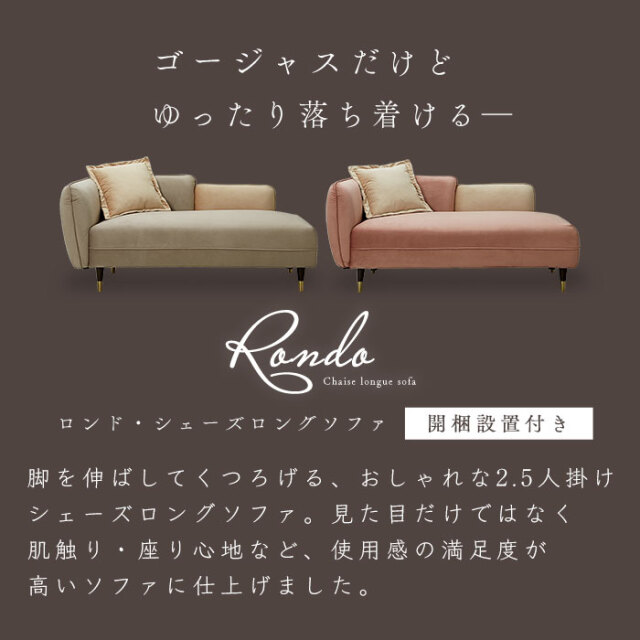 | 商品名 | ベルベット 2.5人掛け シェーズロングソファ ロンド |