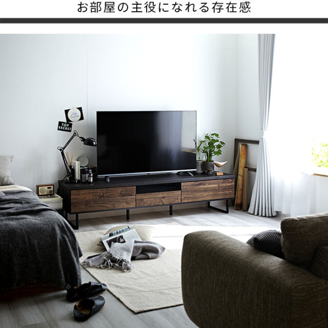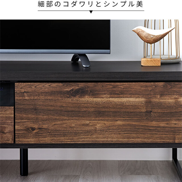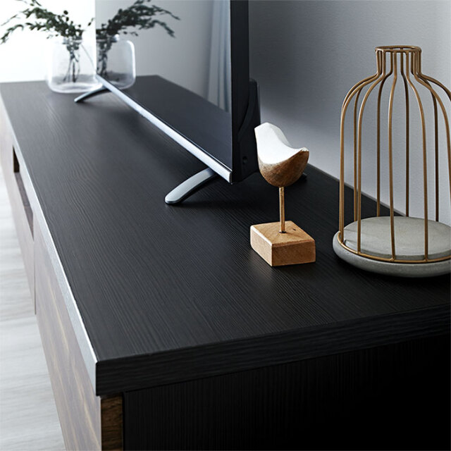 | ブラックアイアンの脚部などのパーツと天然木をリアルに表現した木目シートを合わせたヴィンテージ調の日本製テレビボードになります。 このテレビボードがあるだけでお部屋をスタイリッシュな雰囲気にコーディネートをします。 前板には高級感のある木目を再現したデザイン性の高い強化紙を使用しています。 重厚感ある色味と質感が味わい深さを醸し出し、さらにキズにも強い表面材となっております。 | |