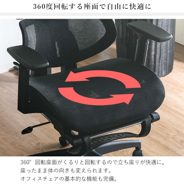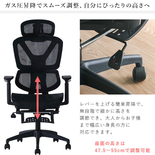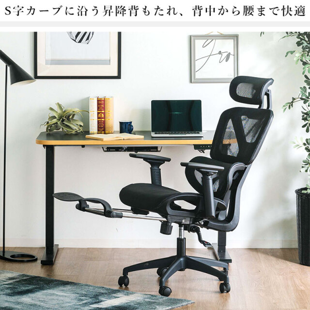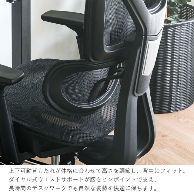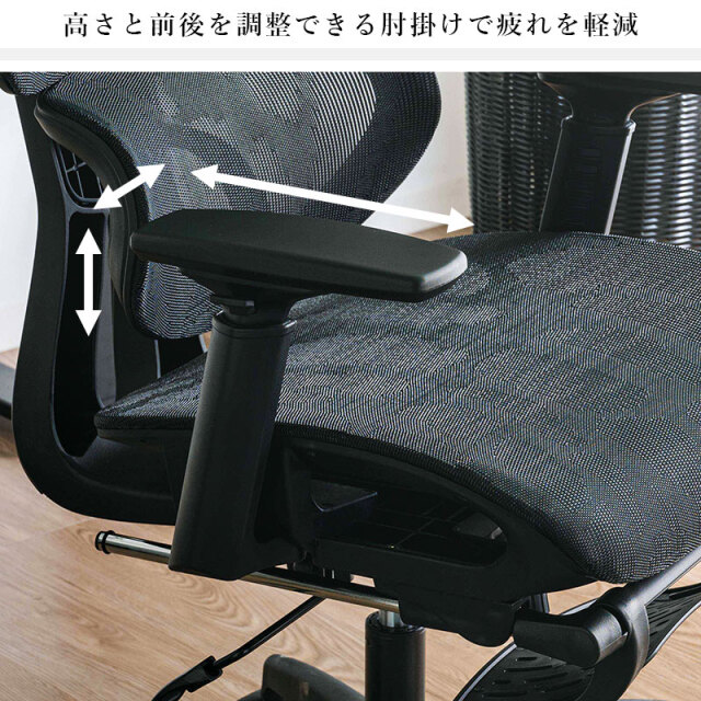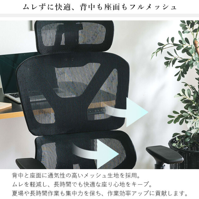 | 蒸れにくい全面メッシュで通気性抜群、長時間作業も爽快快適に。 高さ角度自在ヘッドレストと昇降背もたれで理想の姿勢を支え、調整アームと収納式フットレスト、リクライニングで休憩も快適。 蒸れにくい全面メッシュで通気性抜群、長時間作業も爽快快適に。 高さ角度自在ヘッドレストと昇降背もたれで理想の姿勢を支え、調整アームと収納式フットレスト、リクライニングで休憩も快適。 立体メッシュのヘッドレストは高さ・角度を細やかに調整でき、好みのポジションで頭部をピンポイントにやさしく支えます。 首肩の負担を軽減し、一日中集中をサポート。 | |