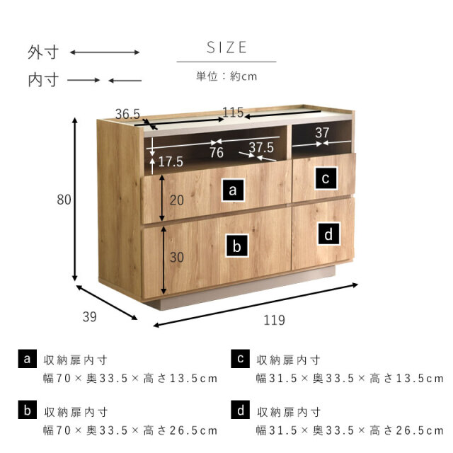 | 商品サイズ | (約)幅119cm×奥行き39cm×高さ80cm |