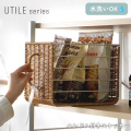 | まるで天然素材の風合い水洗いもできるUTILE ユティルシリーズ UTILE(ユティル)は、まるで天然素材のような風合いを持つラタン調の収納シリーズです。 水や汚れに強く、お手入れ簡単な樹脂素材 樹脂素材(ポリプロピレン・ポリエチレンのチューブ)でできているため、水や汚れに非常に強く、お手入れも簡単です。 水洗い可能で衛生的 水に強いチューブを使い、丁寧に編み込んでいるため、汚れても水洗い可能!キッチンや洗面所など、水回りでも安心してお使いいただけます。 見せる収納にもぴったりなナチュラルな存在感 ナチュラルで美しい存在感は「見せる収納」にもぴったり。暮らしのあらゆるシーンで、空間をおしゃれに彩ります。 棚上の収納に便利!ハンドル付きストッカー このハンドル付きストッカーは、棚上の収納に最適です。 ハンドル付きで、高い位置にある棚の上からでもスムーズに引き出せます。 中身が見やすいデザインのため、高い場所に置いても、必要なものを安心して取り出せます。 キッチンのストック(お菓子、調味料、乾物)はもちろん、背の高いボトル類の収納にもおすすめできる、幅広く活躍するストッカーです。 | |