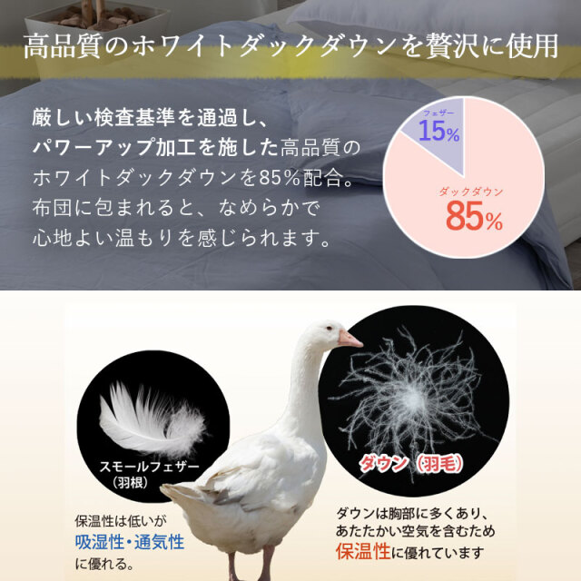 | 商品名 | 羽毛布団 肌掛け WDD85% DP300 シングル S ナチュレリエル |