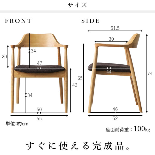 | 商品仕様 | 背部:アッシュ(ラッカー塗装) その他:ラバーウッド(ラッカー塗装) 座面:ファブリック |